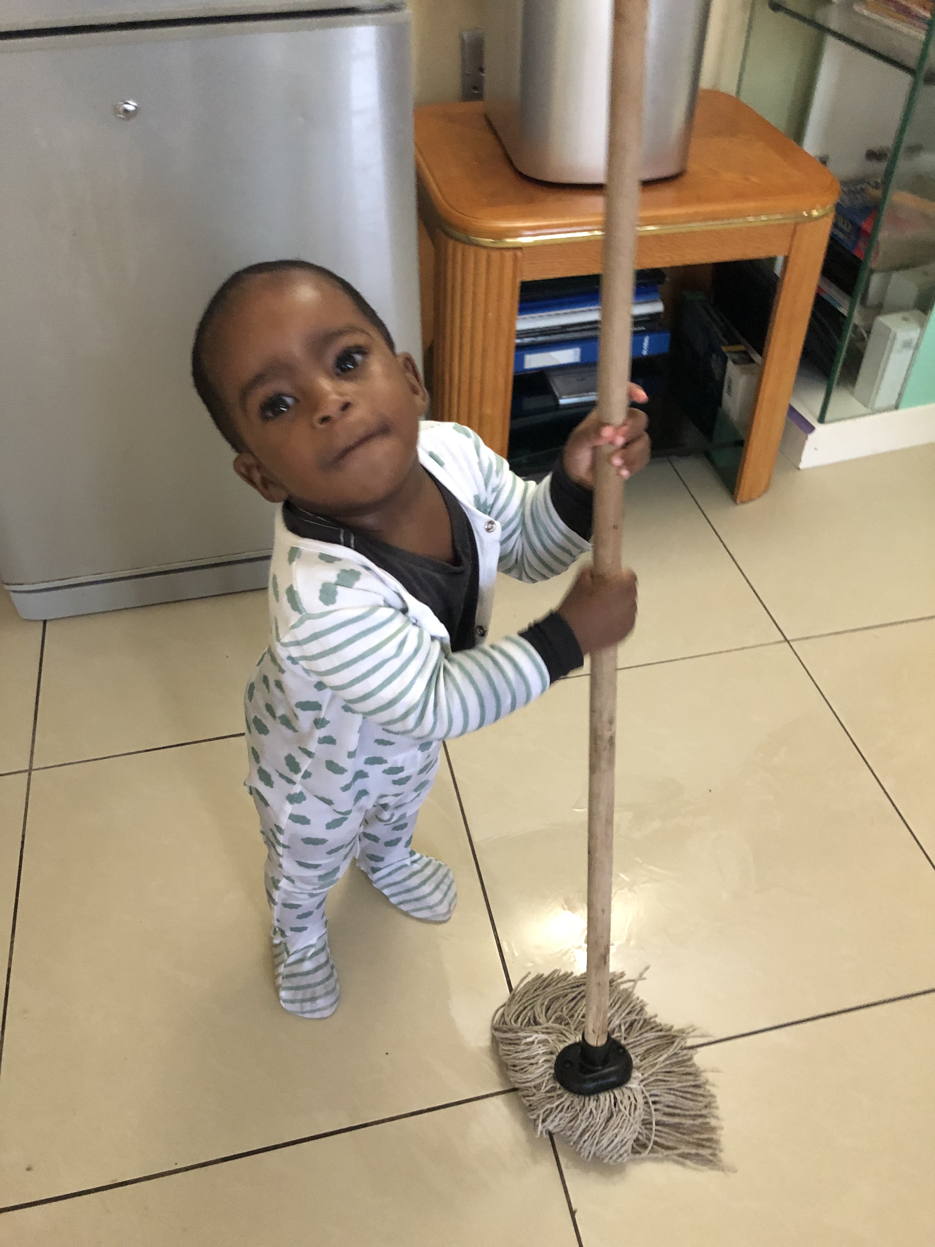 The most memorable incident in this twin mommy journey is the bath time incident of May 4 2019. It was my very first weekend alone with them. They were 14 months old. I was so afraid and had to work on my state of mind days before the weekend. I pre-cooked all the meals except breakfast. Put aside their outfits for the weekend accordingly. I needed a lot of assurance from daddy and the nanny that I would be fine. I knew I had to keep my emotions in check. From previous experience every time I was apprehensive they became fussy and restless. I could tell they did pick the vibes and responded accordingly. This I learnt from as early as they were a few weeks old, on the few occasions when I was alone with them albeit very briefly. Back to the incident… On Saturday we had a very relaxed day. In the evening, starting with Mr engineer, I bathed and dressed him and directed him to the TV as I discarded his water to continue with Sushi. Fast forward to dressing Sushi and Nacho is nicely seated in the bath, all dressed. Not only that, wasted nappy. I don’t know where I got the courage to laugh and take pictures. He grabbed the mop and looked at me and it melted my heart. The cutest innocent face in the world! I still smile at the pictures.